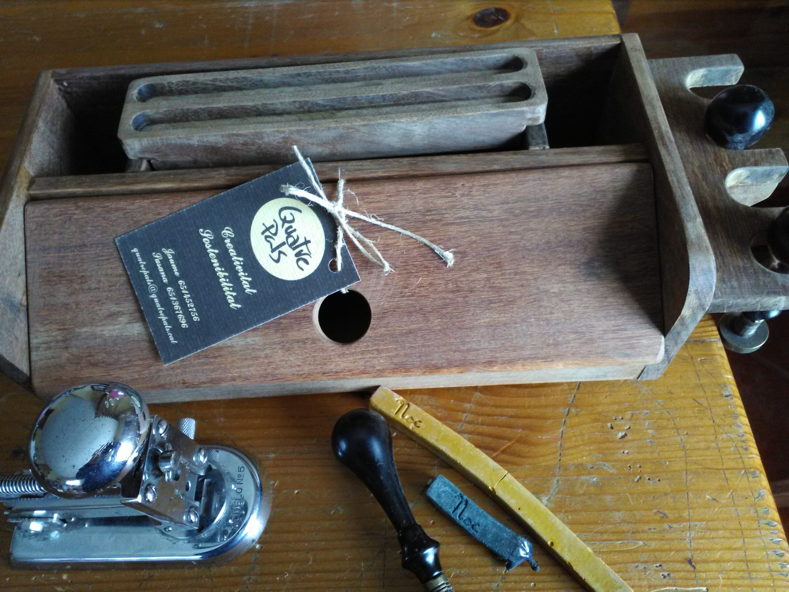 Tot el que fabriquem ho fem artesanalment en un petit garatge o a l’altell de casa. No tenim eines de producció en sèrie ni maquinària de grans dimensions. Tots i cada un dels objectes que venem han passat per les nostres mans i és únic.